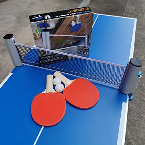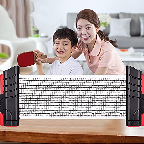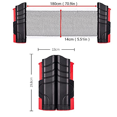 Eenvoudig instellen: gebruik een eenvoudige postknop om tafel te klemmen, en trek vervolgens netten naar een geschikte lengte over tabel. Gratis stretch-stijl-compacte en draagbare ingetrokken pingpongnetten gemaakt van premium katoen mengnet voor tabeloppervlakvervanging eenvoudiger