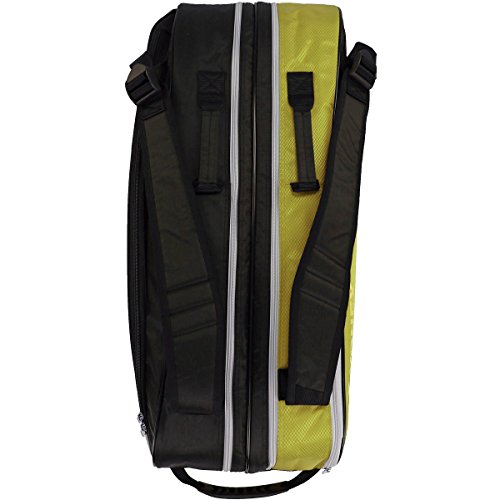 Met de Yonex 8526 Tournament Active 6 racket bag kun je comfortabel 6 rackets en andere items meenemen in het racket compartiment en apart kledingvak. Er is een bovenste schoenzak om schoeisel weg te houden van andere spullen en een zijvak voor accessoires. De racquettas heeft een draaggreep en kan dankzij de twee gevoerde riemen als een rugzak worden gedragen.