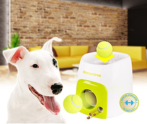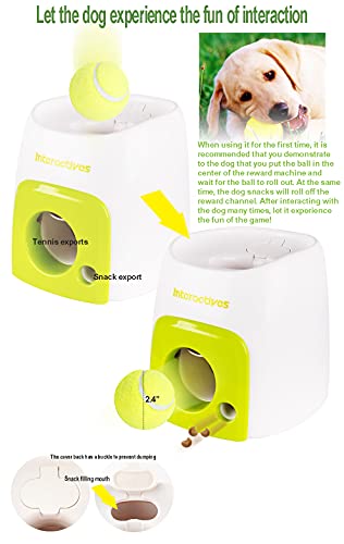 Automatische feeder: Uitgerust met een 2,4 inch elastische tennisbal, geschikt voor huisdieren van verschillende leeftijden. Geen elektriciteit nodig, automatische voeding, gemakkelijk te gebruiken. Automatische balwerper daagt hen uit om iets nieuws te leren. Speelt apporteer met uw hond, interactieve functies helpen bij de training.